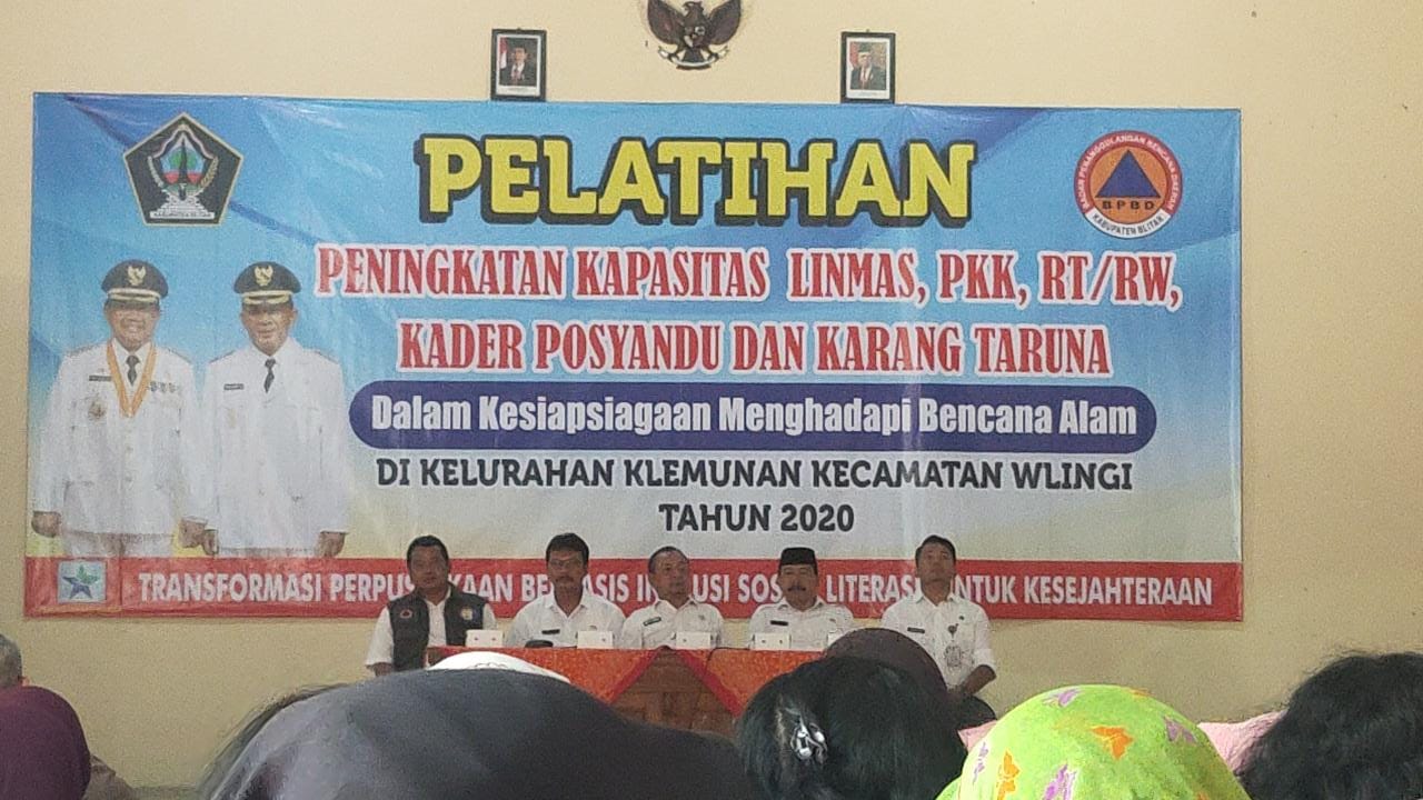 HARI : Rabu TANGGAL : 22 Januari 2020 WAKTU : 08.30 WIB TEMPAT : Kantor Kelurahan. Klemunan Kec. Wlinggi ACARA : Pelatihan Peningkatan Kapasitas Linmas, PKK, RT/RW, Kader Posyandu dan Karang Taruna Dalam Kesiap Siagaan Menghadapi Bencana Alam